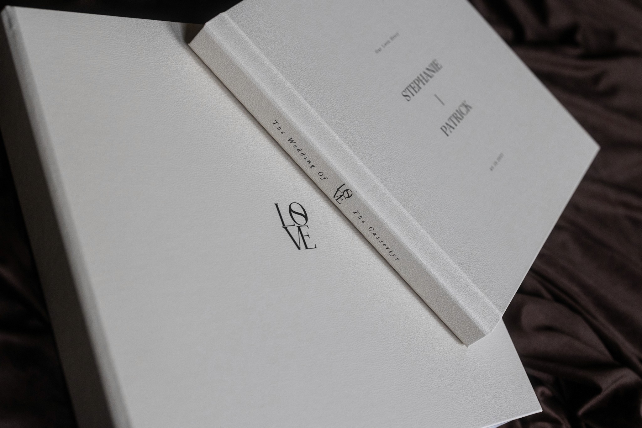 A handcrafted fine art album, thoughtfully designed to preserve your wedding story in a tangible, timeless form, presented alongside a curated keepsake box.