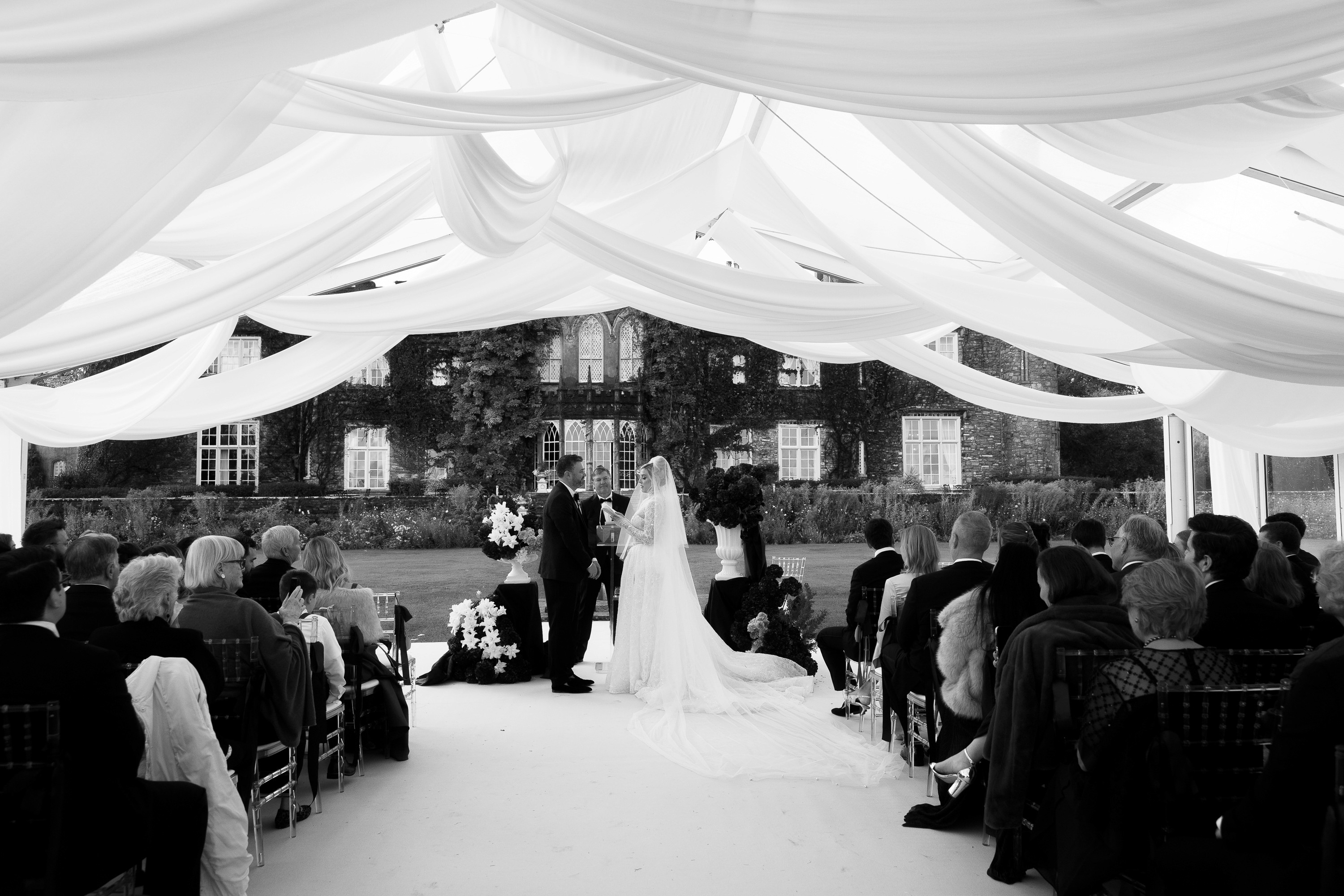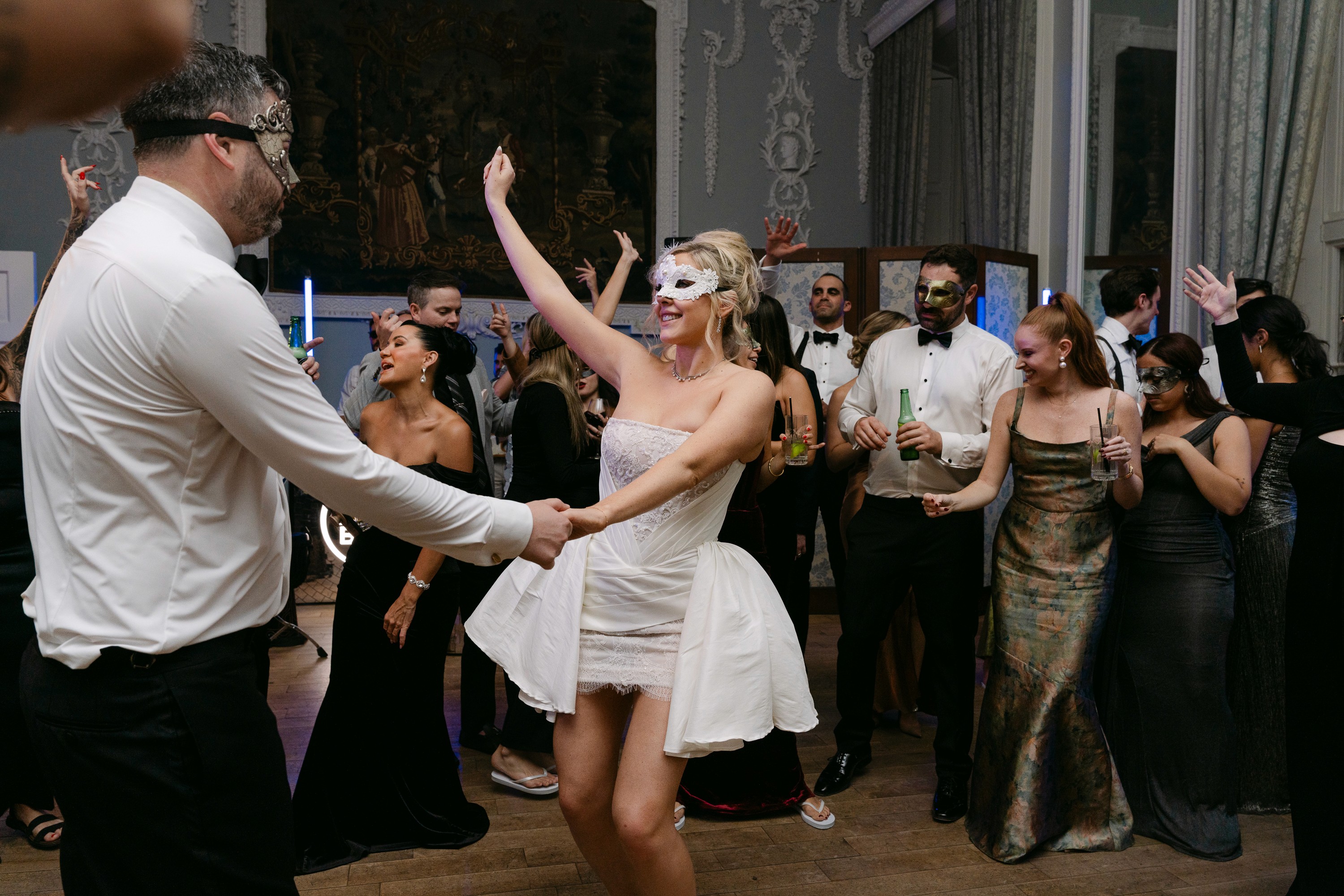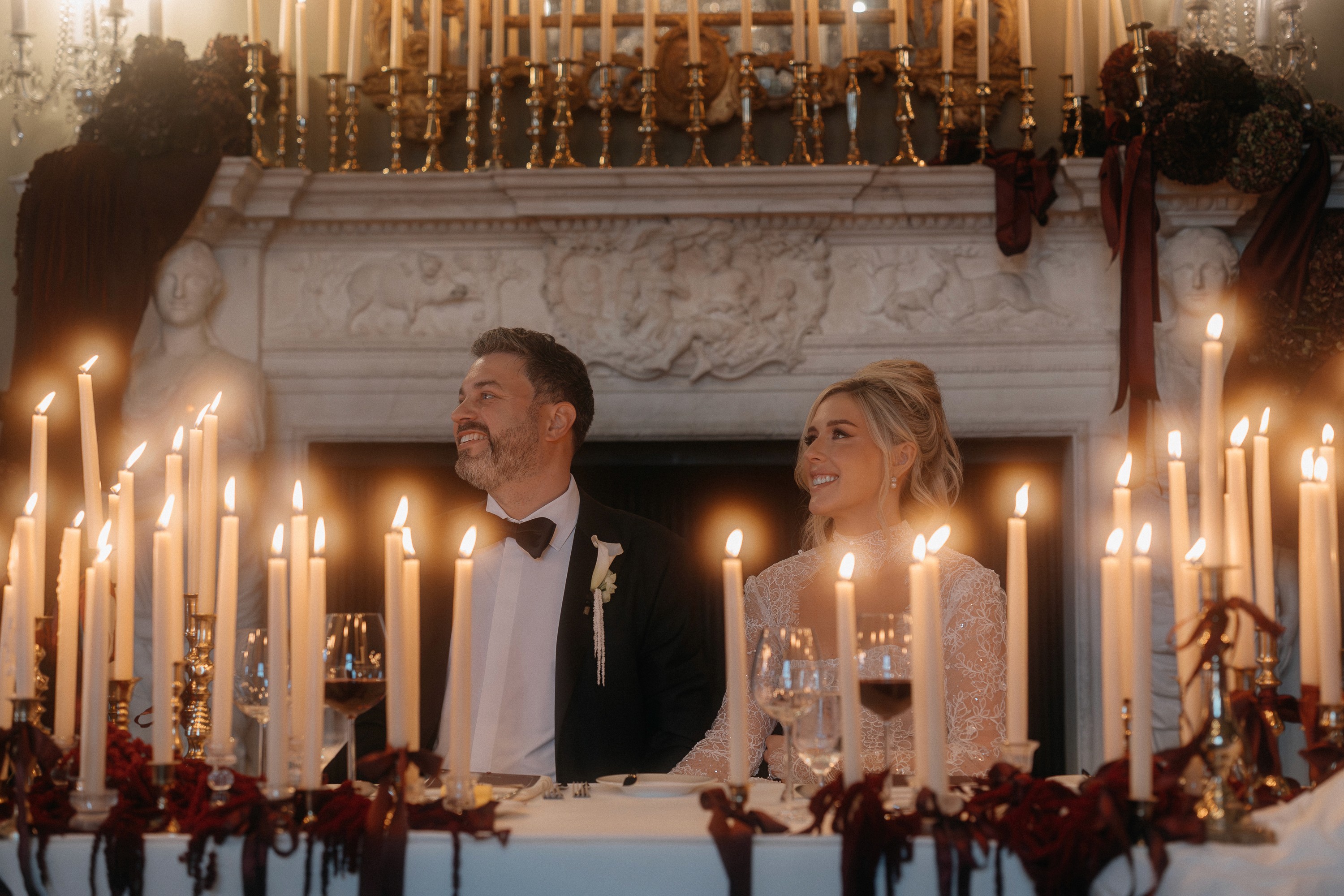 Alexandra and Casey’s wedding was shaped by tradition, movement, and a shared energy that never stood still. From the ceremony through to the dance floor, the day carried a constant sense of momentum, yet never felt overwhelming. Draping transformed the space, softening the light and creating a more immersive atmosphere within the castle. Every moment felt lived rather than staged, with guests fully present, celebrating together in a way that felt both powerful and deeply connected