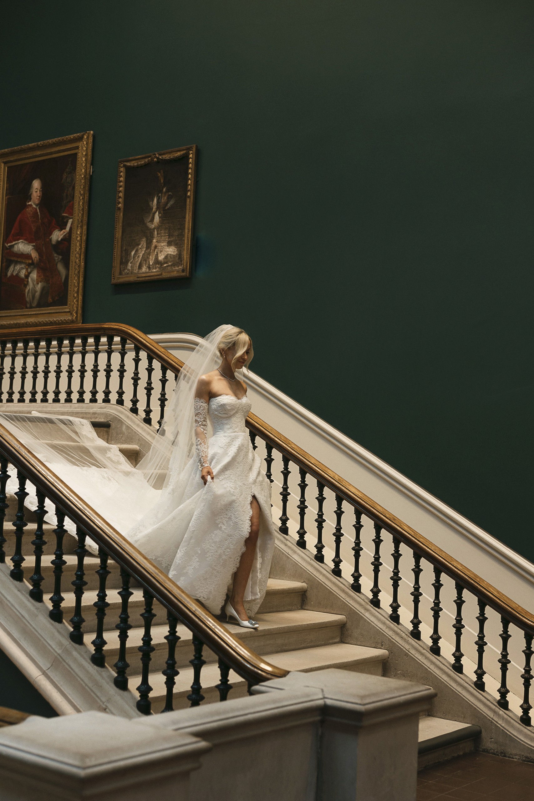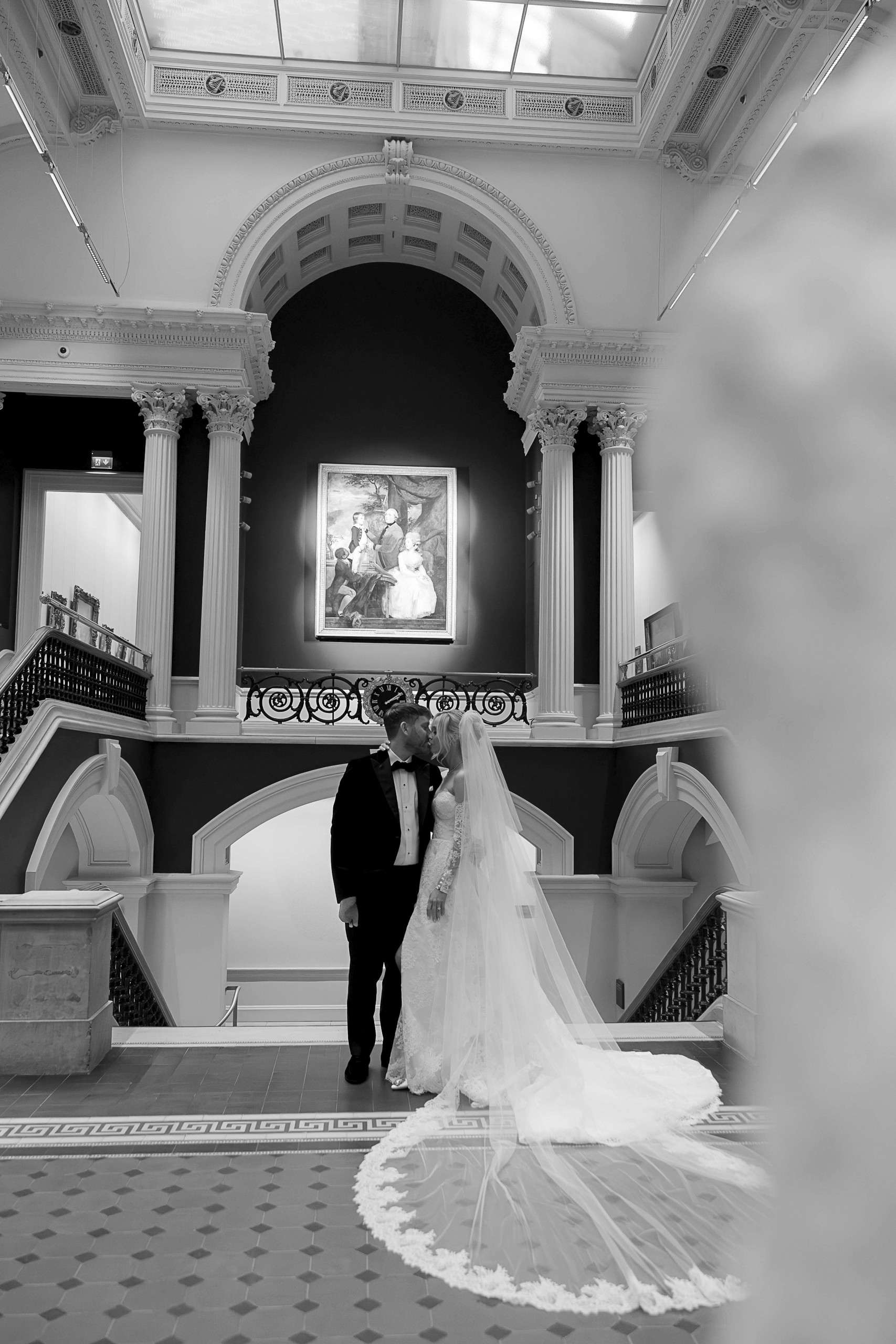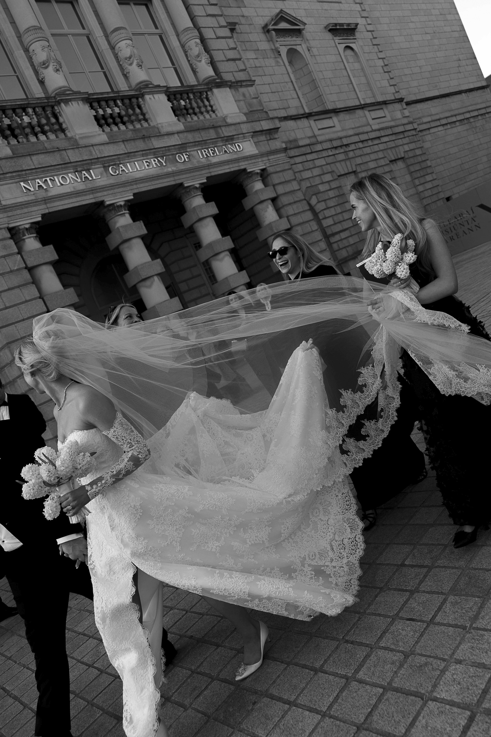 There are weddings that are beautiful, and then there are weddings that mean something. Helena and Stephen's day at the National Gallery of Ireland was quietly and completely both. Stephen had proposed to Helena inside this building, so the decision to marry here was rooted in something real. Walking back through those doors as a couple about to be wed carried a weight that no amount of styling could manufacture. It was already there, already written into the walls.